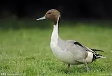 针尾鸭,是雁形目鸭科鸭属动物。体长约75厘米的大型戏水鸭,雄鸟头暗褐色,颈侧有白色纹路,向下与胸部白色相连,中央一对尾羽特别长;背灰色,有黑色细纹;翼镜绿色,胸腹白色,尾下覆羽黑色;雌鸟体羽大致为褐色,…全部>>