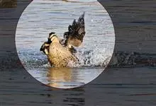 绿头鸭属游禽,大型鸭类。体长47-62厘米,体重大约1千克,外形大小和家鸭相似。雄鸟嘴黄绿色,脚橙黄色,头和颈辉绿色,颈部有一明显的白色领环。上体黑褐色,腰和尾上覆羽黑色,两对中央尾羽亦为黑色,且向…全部>>