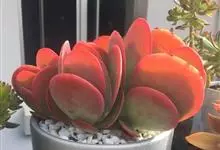 唐印为景天科伽蓝菜属的多年生肉质草本植物。植株中型,株高50厘米,宽20厘米,多分枝;叶片肉质,对生,卵形,全缘,先端钝圆,叶片淡绿色至灰绿色,表面被有厚厚的白粉,光照充足时,叶缘呈红色;圆锥花序,…全部>>