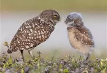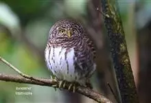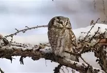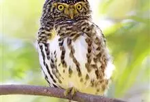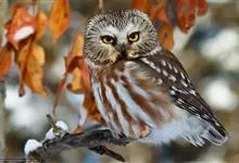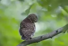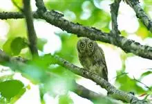 鬼鸮是鸟纲鸱鸮科的鸟类, 全长23-26厘米。共有6个亚种。雌雄羽色相同。额、头顶及枕部褐色,有白色椭圆斑。面盘白色外侧羽缘褐色。胸以下为白色,有褐色纵斑。翅褐色。…全部>>