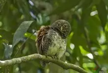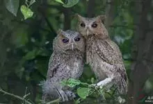 鬼鸮是鸟纲鸱鸮科的鸟类, 全长23-26厘米。共有6个亚种。雌雄羽色相同。额、头顶及枕部褐色,有白色椭圆斑。面盘白色外侧羽缘褐色。胸以下为白色,有褐色纵斑。翅褐色。…全部>>