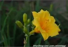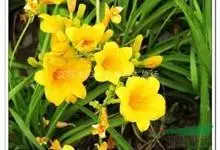 金娃娃萱草:是萱草的人工栽培的园艺品种。地下具根状茎和肉质肥大的纺锤状块根。叶基生,条形,排成两列,长约25厘米,宽1厘米。株高30厘米,花莛粗壮,高约35厘米。螺旋状聚伞花序,花7至10朵。…全部>>