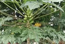 番木瓜,番木瓜科番木瓜属的常绿软木质小乔木,高达10米,具有乳汁;茎不分枝或有时于损伤处分枝;叶大且聚生于茎顶,近似盾形,叶柄中空;花单性或两性,有些品种雄株偶尔生两性花或雌花,…全部>>
