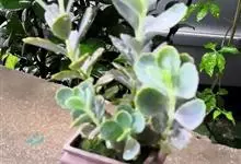 唐印为景天科伽蓝菜属的多年生肉质草本植物。植株中型,株高50厘米,宽20厘米,多分枝;叶片肉质,对生,卵形,全缘,先端钝圆,叶片淡绿色至灰绿色,表面被有厚厚的白粉,光照充足时,叶缘呈红色;圆锥花序,…全部>>