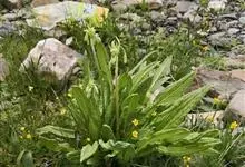多年生草本,具极短的根茎和成丛的粗长支根。叶椭圆状倒披针形,长10-22厘米,宽3-8厘米,先端钝或圆形,基部渐狭窄,下延至叶柄,边缘具稍不整齐的小牙齿,下面被粉质腺体,中肋宽扁,红色,侧脉常多达1…全部>>