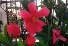 滇山茶:灌木至小乔木,有时高达15米,嫩枝无毛。叶阔椭圆形,上面干后深绿色,发亮,下面深褐色,无毛,侧脉6-7对,边缘有细锯齿。花顶生,红色,直径10厘米,无柄;苞片及萼片10-11片,花瓣红色,…全部>>
