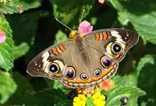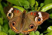美眼蛱蝶为鳞翅目、蛱蝶科、眼蛱蝶属节肢动物。除西北外,全国各地均有分布,国外分布于日本及东南亚。幼虫以马鞭草科的过江藤、车前草科的车前草等为食。全部>>