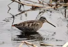 扇尾沙锥是鹬科、沙锥属鸟类,又称普通沙锥、扇尾鹬、小沙锥。体型小;喙粗长而直;上体黑褐色,具栗色和黄白色斑纹;头顶具黄白色中央冠纹,背具4条白纵带;下体白色,颈、胸淡褐色,带褐色纵纹;翼后缘白色,…全部>>