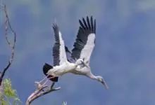 黑头鹮鹳:大型涉禽。体长102厘米,翼展150-175厘米,体重2050-2640克。寿命10年。嘴长而粗壮,飞时头颈伸直。雌雄相似。成鸟上体白色,下体白色。翼下覆羽有黑色横带,具绿色光泽和白色羽缘。…全部>>