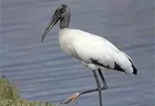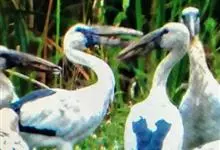黑头鹮鹳:大型涉禽。体长102厘米,翼展150-175厘米,体重2050-2640克。寿命10年。嘴长而粗壮,飞时头颈伸直。雌雄相似。成鸟上体白色,下体白色。翼下覆羽有黑色横带,具绿色光泽和白色羽缘。…全部>>