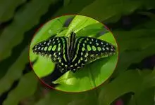 青带凤蝶Graphium sarpedon ,又名青凤蝶,是最普遍的中型凤蝶,飞行速度很快。青带凤蝶的翅膀中央有许多浅蓝色的斑点,很整齐地排列成一条直线。这些斑点由上而下逐渐变大,就像一条青色的带子。全部>>
