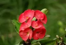 铁海棠为大戟科大戟属蔓生灌木植物;茎多分枝,具纵棱,呈旋转状;叶互生,通常集中于嫩枝上;每个花序基部边缘具微小的红色尖头;苞叶先端圆且具小尖头,无柄,上面鲜红色,下面淡红色;苞片丝状;子房光滑无毛,…全部>>