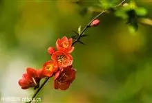 贴梗海棠Nakai)是蔷薇科、木瓜海棠属植物。落叶灌木,高达2米,枝条直立开展,有刺。叶片卵形至椭圆形,稀长椭圆形,长3-9厘米,宽1.5-5厘米。花先叶开放,3-5朵簇生于二年生老枝上。…全部>>