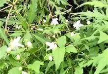 铁线莲,又名东北铁线莲、架子菜,为毛茛科铁线莲属草质藤本植物。铁线莲长约1-2米。茎棕色或紫红色,具六条纵纹,节部膨大,被稀疏短柔毛;二回三出复叶,小叶片狭卵形至披针形;花单生于叶腋;萼片6枚,白色,…全部>>