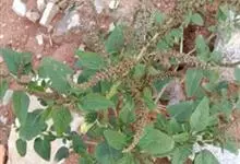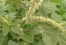 反枝苋是苋科苋属的一年生草本植物。株高达1米;茎密被柔毛;叶菱状卵形或椭圆状卵形,先端锐尖或尖凹,两面及边缘被柔毛,下面毛较密;穗状圆锥花序,顶生花穗较侧生者长;花被片长圆形或长圆状倒卵形,…全部>>