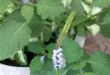 马鞭草是马鞭草科、马鞭草属多年生草本植物。马鞭草的茎呈直立暗绿色,呈四棱形,有稀疏粗毛;绿色叶片呈长卵形,基部为樱形,边缘有粗锯齿;细长的穗状花序生枝顶或腋生,花小而稀疏,花期在7月;果呈长圆形,…全部>>