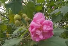 木芙蓉,锦葵科木槿属落叶灌木或小乔木。小枝上有细绒毛;叶片为卵状心形,托叶为披针形,常早落;花单生,花萼为钟形,花冠初为白色或淡红色,后逐渐变为深红色;果实为扁球形,有淡黄色的毛附着。花期8到10月。…全部>>