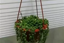 珍珠吊兰因鼓鼓、饱满翠绿的椭圆形小叶子形似珍珠状而得名。又名翡翠珠、 佛珠吊兰、翡翠珠、绿之铃,绿铃。菊科千里光属多肉植物,花期一般是当年的12月至翌年1月。珍珠吊兰性喜富含有机质的、疏松肥沃的土壤。…全部>>