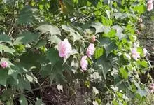 木芙蓉,锦葵科木槿属落叶灌木或小乔木。小枝上有细绒毛;叶片为卵状心形,托叶为披针形,常早落;花单生,花萼为钟形,花冠初为白色或淡红色,后逐渐变为深红色;果实为扁球形,有淡黄色的毛附着。花期8到10月。…全部>>
