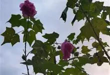 海滨木槿是锦葵科木槿属植物,落叶小乔木,株高3-5米,胸径20厘米,扁球形树冠,枝叶繁盛。厚纸质单叶互生,扁圆形、倒卵形或宽倒卵形,先端钝近平,具短突尖,基部圆形或浅心形,叶缘中上部具细圆齿,…全部>>