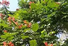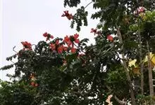 火焰木,又名苞萼木、喷泉树,为紫葳科常绿大乔木,株高10—20米,叶为奇数羽状复叶,对生,较大,斜椭圆形,全缘,纸质,叶面深绿色。 全部>>