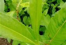 酸模叶蓼 Delarbre),是蓼科蓼属的一年生草本。株高可达90厘米;茎直立,分枝,节部膨大;叶披针形或宽披针形,先端渐尖或尖,基部楔形,上面常具黑褐色新月形斑点,…全部>>