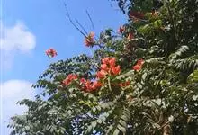 火焰树是紫葳科、火焰树属乔木,树皮平滑,灰褐色。奇数羽状复叶,对生,连叶柄长达45厘米;小叶13-17枚,叶片椭圆形至倒卵形,伞房状总状花序,顶生,密集;被褐色微柔毛,具有明显的皮孔;花冠一侧膨大,…全部>>