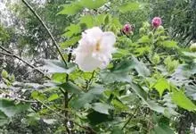 木芙蓉,锦葵科木槿属落叶灌木或小乔木。小枝上有细绒毛;叶片为卵状心形,托叶为披针形,常早落;花单生,花萼为钟形,花冠初为白色或淡红色,后逐渐变为深红色;果实为扁球形,有淡黄色的毛附着。花期8到10月。…全部>>
