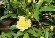 黄木香花 Rehd.)是蔷薇科、蔷薇属植物,为木香花的变型品种,攀缘小灌木,高可达6米。小叶3-5枚,稀7枚,小叶片椭圆形或长圆状披针形,先端急尖或稍钝,基部近圆形或宽楔形,边缘有紧贴细锯齿。花小型,…全部>>