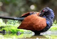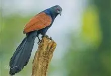 褐翅鸦鹃,是鹃形目鸦鹃科鸦鹃属的鸟类。褐翅鸦鹃的身体为黑色;头颈和胸带蓝紫色金属光泽并具黑亮的羽干纹,下胸至腹部泛金属绿光泽;两翼和肩部为棕栗色,外侧飞羽具暗色羽端,尾羽闪铜绿色光泽;虹膜赤红色,…全部>>