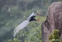 白鹇,是鸡形目雉科鹇属的一种留鸟。雄鸟上体白色并具黑色纹,下体黑色,头顶具黑色长羽冠,尾白而长;雌鸟体型较小,以橄榄褐色为主,下体具白色或皮黄色细纹;虹膜褐色,眼周具红色裸皮,喙黄色,脚鲜红色。…全部>>