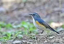 红胁蓝尾鸲俗名:蓝点冈子、蓝尾巴根子、蓝尾杰、蓝尾欧鸲。体型略小而喉白的鸲。特征为橘黄色两胁与白色腹部及臀成对比。雄鸟上体蓝色,眉纹白;亚成鸟及雌鸟褐色,尾蓝。…全部>>