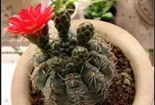 绯花玉 Speg.)是仙人掌科、裸萼球属多肉植物,植株呈扁球形,表皮墨绿色,刺针状,每个刺座有5枚灰色周刺,花生于球体顶端,夏季开花,花色有白、粉红、深红等。果实纺锤形,深灰绿色,种子黑色。…全部>>