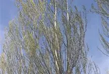 银白杨高15~30米,树冠宽阔;树皮白色至灰白色,基部常粗糙。花期4~5月,果期5~6月。在中国乃至世界各地分布广泛。其喜光,不耐荫。耐严寒,一40度条件下无冻害。该种植物易成活,所以常用来栽培,…全部>>