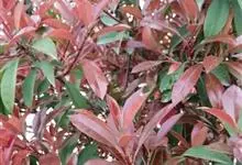 红叶石楠 是蔷薇科,石楠属杂交种,为常绿小乔木或灌木,乔木高可达5米、灌木高可达2米。叶片革质,长圆形至倒卵状、披针形,叶端渐尖,叶基楔形,叶缘有带腺的锯齿,花多而密,复伞房花序,花白色,梨果黄红色,…全部>>