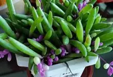 紫玄月是菊科厚敦菊属多年生肉质草本植物。蔓长30-60厘米;茎紫色;叶对生或互生茎上肉质,叶片细圆柱形,中间粗两端细稍弯曲;花序着生于叶腋,头状花序,舌状花黄色,管状花黄色;花期全年。…全部>>