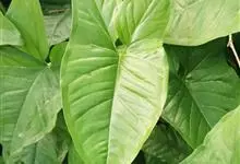 合果芋是天南星科,合果芋属多年生常绿草本植物,合果芋的茎节具气生根,攀附他物生长。叶片呈两型性,箭形或戟形;叶基裂片两侧常着生小型耳状叶片。佛焰苞浅绿或黄色。合果芋一般不易开花。…全部>>