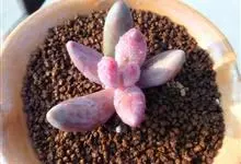 乒乓福娘,植株叶片退化成扁卵状,植株为直立的肉质灌木,能够长高。叶片对生,扁卵型至圆卵形,叶片顶端紫红圆叶尖,叶面有一层白粉。强光下叶片的顶端边缘会较红。初夏开花,聚伞状圆锥花序,花序较高,小花管状…全部>>