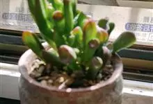 筒叶花月,是景天科青锁龙属的多年生草本植物。植株多分株,灌木状,茎较粗壮,圆柱形,表皮灰褐色;叶片肉质,互生,呈圆筒状,簇生于茎或分枝顶端,叶端呈斜截形,截面为椭圆形;花呈星状,淡白色;花期秋季。…全部>>
