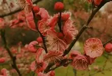 宫粉梅 Rehd.)是蔷薇科、李属植物,梅花品系中真梅系直枝梅类宫粉型,其花复瓣至重瓣,呈或深或浅的红色。落叶乔木,高达10米。树干褐紫色,有纵驳纹,小枝细而无毛,多为绿色。叶广卵形至卵形,…全部>>
