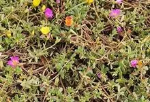 大花马齿苋:一年生草本,高10-30厘米。茎平卧或斜升,紫红色,多分枝,节上丛生毛。叶密集枝端,较下的叶不规则互生,叶片细圆柱形,无毛。花单生或数朵簇生枝端,直径2.5-4厘米,…全部>>