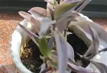 紫竹梅 D. R. Hunt),鸭跖草科紫露草属植物的多年生草本植物,茎多分枝,带肉质,紫红色,节上常生须根,上部近于直立;叶互生,披针形,先端渐尖,基部抱茎而成鞘,鞘口有白色长睫毛,上面暗绿色,…全部>>
