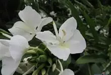 姜花又名野姜花。是姜科姜花属的多年生草本植物,茎高1-2米;叶片长圆状披针形或披针形,叶面光滑,叶背被短柔毛;穗状花序顶生,椭圆形,花芬芳,白色;蒴果卵状三棱形,微黄绿色;种子鲜红色,具橘红色的假种皮。…全部>>