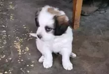 圣伯纳犬,别名巴里汉德,属于大型工作犬,肩高约65~90厘米,体重约50~90千克。圣伯纳犬身体强壮,被毛红褐色和白色相间,头圆而宽大。颈部强壮,胸宽深,背直。前肢长直,腕关节略前倾,后肢腿骨粗壮,…全部>>