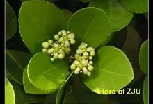 常绿灌木或小乔木,高达8米。 叶光亮革质,倒卵形或窄长椭圆形,长3-6厘米,宽2-3厘米。 聚伞花序腋生,总花梗长2.5-3.5厘米,1-2回2歧分枝,每分枝顶端有5-12花的短梗小聚伞花序;花白色…全部>>