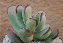 燕子掌 Druce),景天科青锁龙属直立灌木,茎粗壮,多分枝,灰绿色,有老树皮剥落留下的水平棕色条纹;叶具短柄,绿色,无毛,通常具红色边缘,倒卵形;花冠呈星状,…全部>>