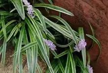 银纹沿阶草百合科沿阶草属,多年生草本,高约5~30cm。叶丛生,无柄,窄线形,革质,叶面有银白色纵纹,叶端弯垂。总状花序具15~20朵花,花常生或2~3朵簇生苞片腋内,花小,淡蓝色,夏季开放;果期8…全部>>