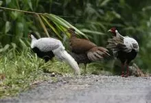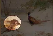 环颈雉是雉科、雉属的一种走禽,共有30个亚种。体重900-1050克,体长53-89厘米。体型较家鸡略小,但尾巴却长得多。雄鸟和雌鸟羽色不同,雄鸟羽色华丽,多具金属反光,…全部>>