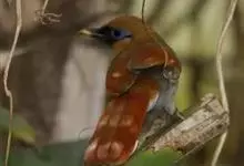 棕噪鹛中型鸟类,体长25~28厘米。上体赭褐色,头顶具黑色羽缘,尾上覆羽灰白色,尾羽棕栗色,外侧尾羽具宽阔的白色端斑。额、眼先、眼周、耳羽上部、脸前部和颏黑色,眼周裸皮蓝色,极为醒目。喉和上胸与背同色,…全部>>