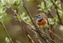 蓝点颏亦称“蓝喉歌鸲”,通称蓝靛颏儿。身体大小和麻雀相似,体长12-13厘米,体重17-18克。头部、上体主要为土褐色。眉纹白色。尾羽黑褐色,基部栗红色。颏部、喉部辉蓝色,下面有黑色横纹。下体白色。…全部>>